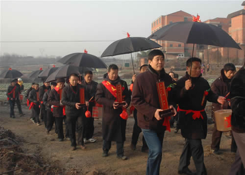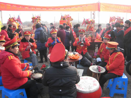 附近十里八乡的锣鼓队都前来助兴,吹吹打打,分外热闹