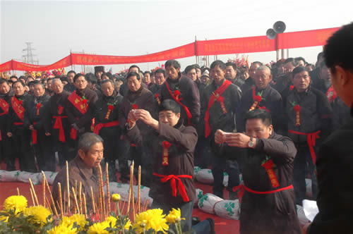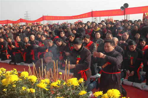 行初献礼、亚献礼、终献礼,一叩首,二叩首,三叩首