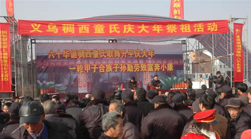 2009年12月28日,这是浙江义乌稠西童氏的一个不寻常的日子,六十甲子一庆的过大年祭祖活动隆重举行,盛况空前。果真是先祖有灵,昨天还是大雪纷飞,今天已是艳阳高照。
