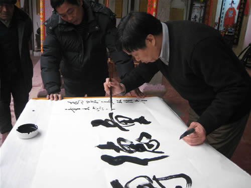 应义乌宗亲之请,童禅福宗亲欣然提笔为义乌童大宗祠题词:“童德传芳”,并题写对联:“一门忠义代代传,双桂英才家家兴”。