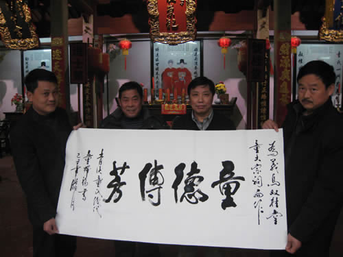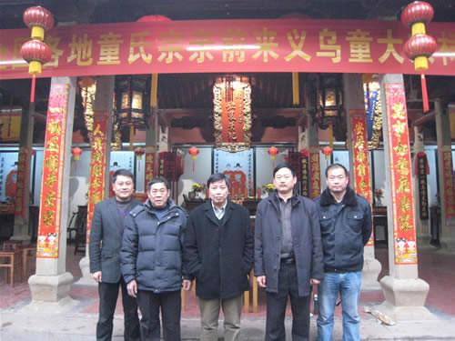 童禅福与童仕明、童起明、童仕松等在义乌童大宗祠合影