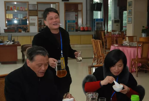 在每餐吃饭之前工作人员都是安排完客人后才入席,在过程当中以东道主的身份敬各地来的宗亲。