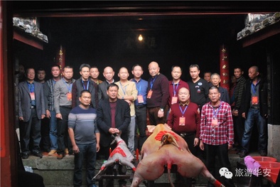 米粿、红酒、水果、供猪琳琅满目,鞭炮声、锣鼓声热闹非凡,在华安高车乡童氏慎德堂挤满前来祭拜的人们。那今天到底是啥日子?原来是慎德堂冬蒸典祭的吉日,在这里,100多名来自台湾、浙江、广东等地的童氏宗亲齐聚高车童氏慎德堂,按照当地风俗,焚香点烛,参拜祖宗,行跪拜大礼,缅怀祖先。