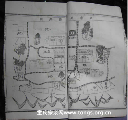 这是原淳安富康童氏祖居地地图,因富康现已沉入千岛湖水库底,故此图更显珍贵