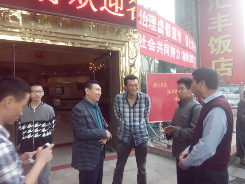 2016年4月4日上午在汇丰饭店门口接待来参加清明会的宗亲,来自各地几乎都互不认识的宗亲,在聊着家族文化谈到孝的时候,大家都在畅所欲言,说当今有的子女猪狗不如,对父母拳脚相加,说父母的无能,没有给自己留下丰厚的财产。
