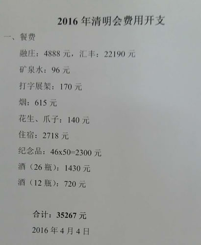 在4月4日的下午,在微信上即发出本次活动费用清单。让大家明了组织者所用的开销,内容很细,也很及时。当我在微信上第一眼见到帐目单时,就觉得这个团队是有希望的,做事是有条理的。领导人是值得信任的。