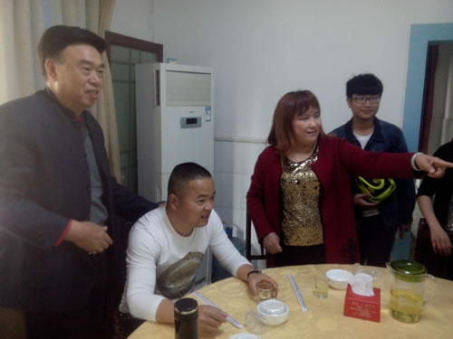 那是在4月2日中午,他安排在泸州“福人居香鹅馆”进餐,我与童代伦、童绍海等人先到一步,他随后也就到了。人还没有进门,就听见那洪亮的声音“哪位是童海根宗亲”。虽然在微信上多有联系,却是第一次见面,却象老朋友那样亲切,他伸出那双宽厚的手,与我的手紧紧的握在一起。我们很自然的进行交谈,话题很多,生活、工作、经历、家庭,最多的还是宗亲文化的传承。