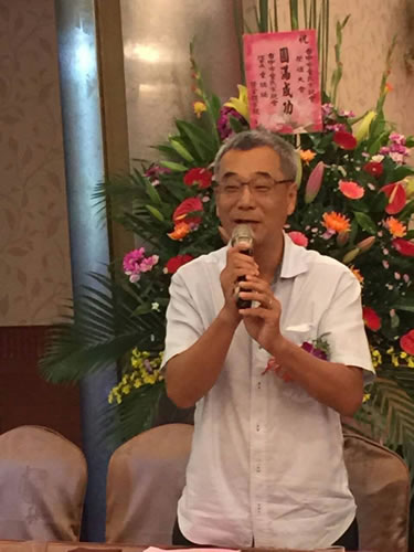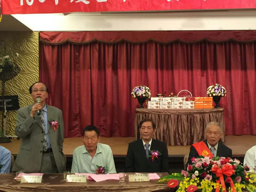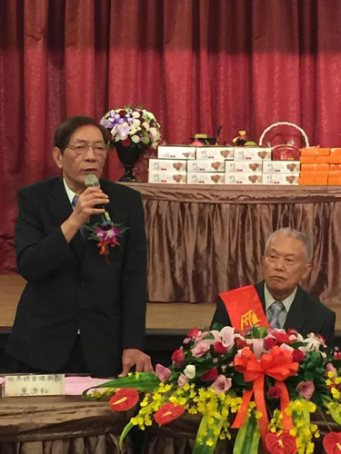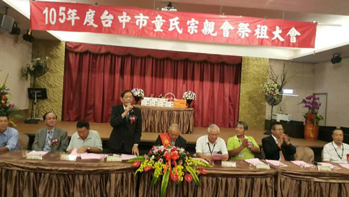 2016年9月4日,台湾童氏宗亲欢聚台中市,参加童氏宗亲会祭祖大会,图为台湾世界童氏宗亲总会理事长童清松及各区理事长致辞。