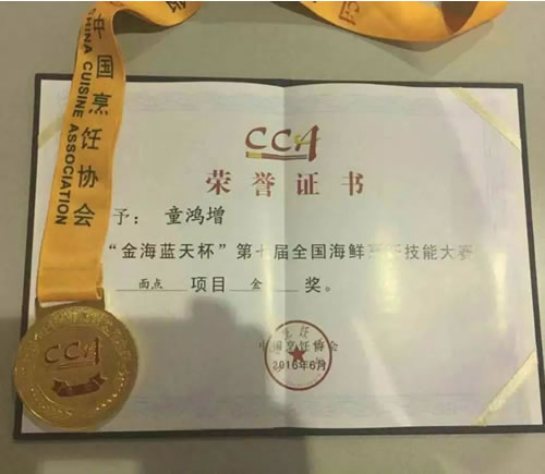 第七届全国海鲜烹饪技能大赛比赛项目众多,气氛热闹非凡。2016年6月3日童鸿增经过剧烈的角逐终于在面点类脱颖而出,斩获全国海鲜烹饪技能大赛面点项目金奖。