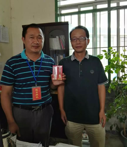 童坊中心学校校长童长兴向学区刘校长介绍:童化平的父亲童国荣是老教师;其妹妹也是教师;大舅二舅也是教师,童化平本人也是童坊中心学校出来的,为教师健康着想特地回来向在职教职工免费赠送船家宝贝回报感恩母校。童长兴校长代表在职教职工表示感谢。童坊学区刘校长对此善举表示由衷感谢,全权委托童长兴校长办好此事。