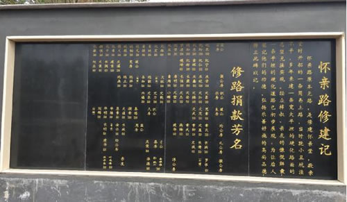 附《怀亲路修建》:怀亲路原本无路,是修建怀亲堂、敬亲堂时开拓的一条简易土路,当时既小且坑洼不平,多年来建一条宽大平坦的硬化路面的愿望无法实现。经众梓叔、亲友的慷慨解囊,一条平坦的硬化道路已初步展现。为让后人铭记他们的功德,弘扬乐善好施的高尚品德,特立此碑以记。