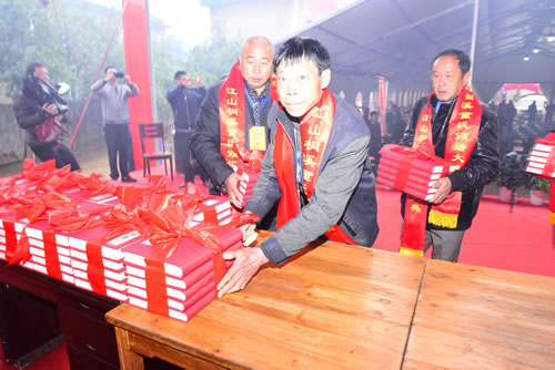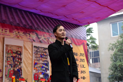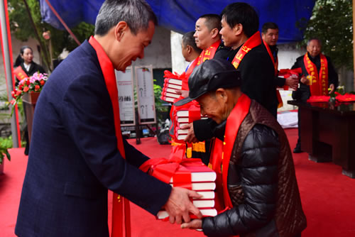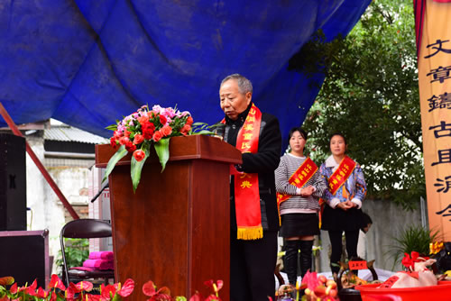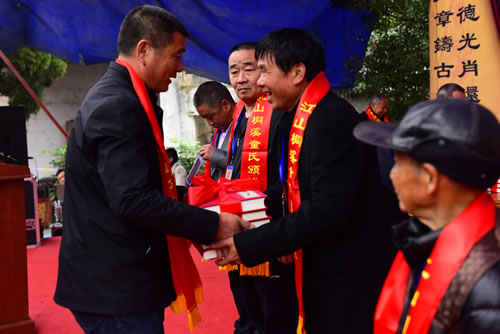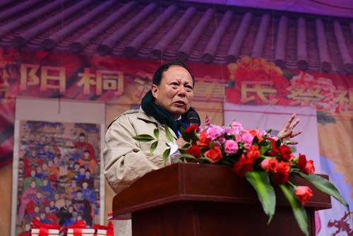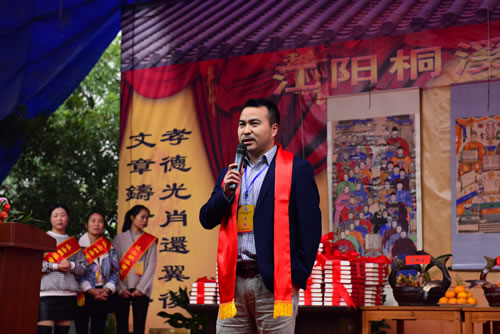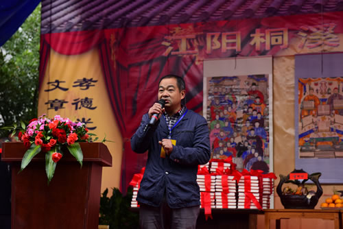 桐溪修谱理事会秘书长童存德介绍修谱情况