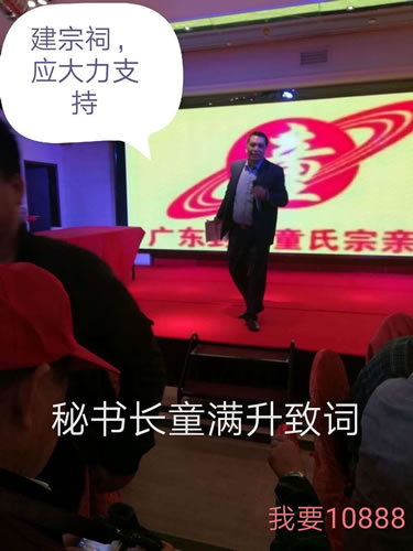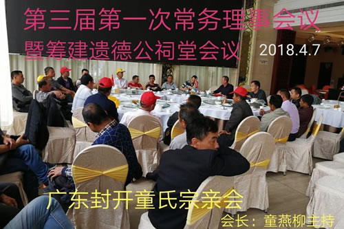 2018年4月7日,广东封开童氏近300名遗德公后裔宗亲,齐集江川豆腐坑渡口,参加了缅怀先祖活动,成功召开了第三届第一次常务理事会,为早日建成,童氏遗德公宗祠努力并付出。前会长(荣誉会长)童敬德,前秘书长童松清,各地方常务副会长,副会长和理事代表们,参加了今次活动。会长童燕柳组织,秘书长童满升主持了本次会议。优秀宗亲童步能亲写五幅墨宝,作为活动抽奖礼品,希望大家童心童德,有钱出钱,有力出力,能够尽快建好童氏遗德公宗祠,让子孙后代有个感恩场所。