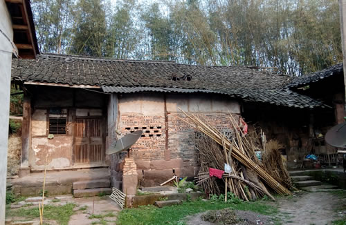 下火车后,天色还是黑的。拚车,一个多小时就从宜宾到了长宁,并联系上了宗亲。宗亲二话没说驾车前往,我还以为很远。没有想到,从房前屋后的小街小巷里穿出,在镇外开了没有几分钟,就到了几栋屋的前面,告诉我那破旧的古屋就是祠堂,原来是四合院。走近一看,铁将军把门。经问邻居,原来人去街上了。