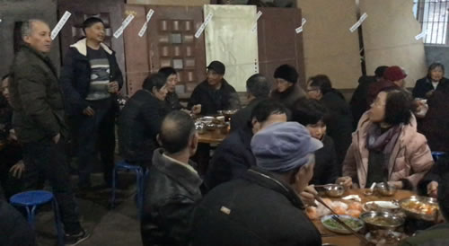 最后再落实时间与专职烧饭的人。下午四点多童才有路过门口,得知他与余祥一起去十里牌,刚回。把事情简单的向他介绍了一下,让他去叫童余祥一起来家里,大家商量了一下。确定后我把名单整理出来,四个片区四个人分别通知。外围由我负责通知,村中三个片,分别由童余祥、童才有、王江仙负责,外姓的由周立华通知。另外请能干后生也参加,地点在村文化礼堂,时间30日下午开始,先来先聊,17:00晚宴开始。