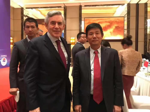 英国前首相布朗与童彬原董事长在晚宴上合影