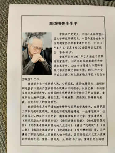 2019年7月3日上午10点~12点,童道明宗长追悼会在北京八宝山殡仪馆兰厅举行。笔者作为童氏宗亲网在京的通联员,受童氏宗亲网委托,代表全球童氏宗亲到八宝山悼念童道明宗长,向他敬献了花圈,慰问了童道明的亲属,并且作为宗亲代表和童道明宗长子女在一个家属答谢区域,迎来送往各地来宾。