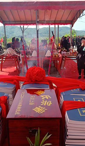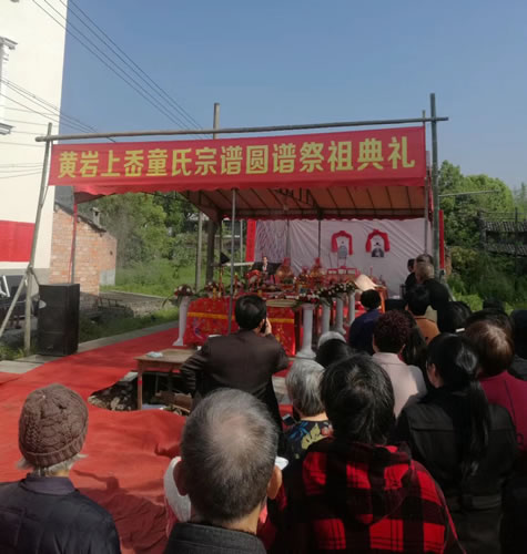 2019年4月17日,浙江台州黄岩上岙童氏在黄岩头陀镇溪东村举行圆谱祭祖典礼。各支派代表包括宁海前童童氏约350人参加。
