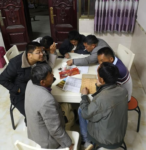 上午九点多,从那盖的严严实实塑料布下面找出牌位,发现“至明夫妻”及“开吉夫妻”之牌位,这样解开了布谱上存在“至”与“开”的字辈关系。后来童兴忠的到来才把“正”字取名关系彻底弄明白,他带来了一个小本本,里面记载了罗布古童氏的“流传根计”,上面有很多小支系的父子名字关系。