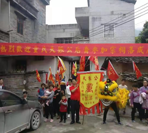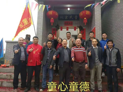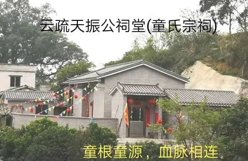 承蒙各宗亲们的鼎力支持,重修位于广东封开县罗董镇扶塘村委云疏村(粤西北偏僻的小山村,村中人口约600人,姓童居多),童氏天振公宗祠坐甲向庚兼寅申吉度分针,(雁门始祖→浙江→封开江川→扶塘→云疏),于二O一九年(公历)3月15日(农历二月初九日子时零五分)星期五,在云疏村天振公门楼(童氏宗祠)举行了黉祠庆典活动。