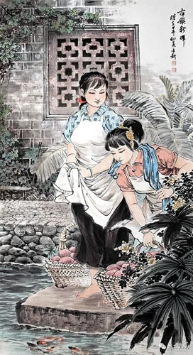 童帝新在57岁回乡后,很怀念藏区各地檀香飘缭、梵音悠扬的寺院。他结合唐卡的工艺开始专研彩墨画,作品《中华颂》在2012年宁波市比赛中获得金奖和最高人气奖。他的作品九龙舞鹤,两眼电光,四爪腾越,喷云吐雾,追逐嬉戏于苍茫云海间,极尽腾变之态,叱咤之势,迥异之状跃然卷上,整幅作品迸发着九龙之无穷变化之神力。
