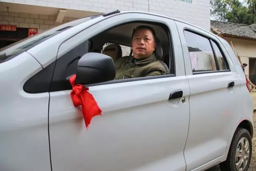 刚买不久的电动轿车,童建新说冬天有了它就不怕路上冷了,还可以装上不少乐器出门。
