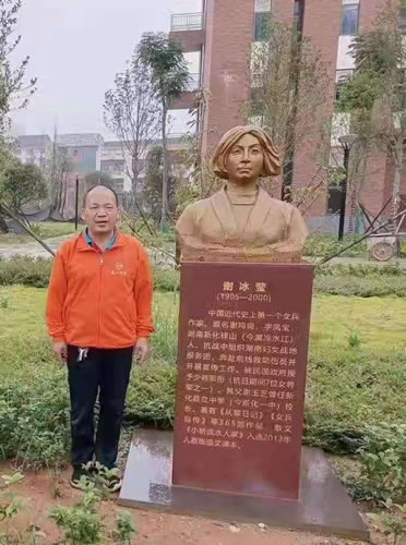 这是怎么一回事啊,是我所熟悉的童建文老师吗?怎么可能?但是事实就是让人瞬间无语,现实就是那么残酷,那里明明白白写着:宣传谢冰莹文化者――铎山中学退休老师。