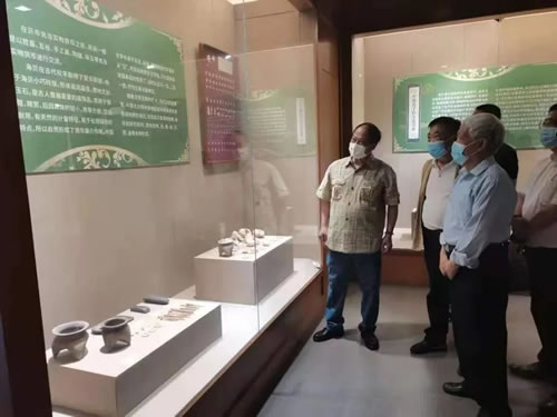 童德明向主办单位领导及嘉宾介绍本次展览的展品、以及他的一些收藏经历和收藏感悟。