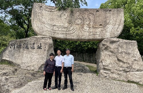 今年五月初的一天中午12点多,我突然接到了一个自报是童康海的电话,说他已经到余姚大隐,想到河姆渡遗址参观,我当即表示欢迎,马上驱车到河姆渡遗址等候康海宗亲及他夫人的到来。那天他是从杭州回宁海时,顺道来河姆渡遗址参观的。我全程陪同康海宗亲一家参观了具有七千年文化的河姆渡遗址,并在河姆渡遗址双鸟朝阳的雕塑前合影留念。就在那天,他告知我他得了癌症,晚期了。