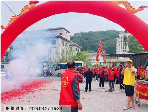 祭祖前夕,各项筹备工作早已全面就绪。3月27日下午,来自福建长汀童坊与连城、江西上饶、广东英德与清远等地的童氏梓叔陆续抵达永定仙峰社区。为迎接远道而来的家人,仙峰社区处处洋溢着热烈喜庆的氛围,社区入口拱门矗立、彩旗飘扬,处处装点一新;锣鼓队、乐队整齐列队,奏响欢快激昂的乐曲,以最热忱的姿态迎接各地宗亲。晚饭后,在友谊公房理事会的牵头组织下,座谈交流会在仙峰社区居委会顺利召开,各地代表踊跃发言,畅谈宗亲情谊、交流家乡发展,众人一致达成共识,今后将持续保持密切联系,加强各地的沟通往来,携手传承优良家风。