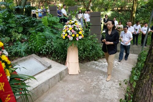 悼词结束后,所有在场人员默哀,深切缅怀这位革命先辈的光辉业绩。随后,大家向童小鹏同志墓碑三鞠躬,并献上鲜花,以表达对革命前辈的敬仰。