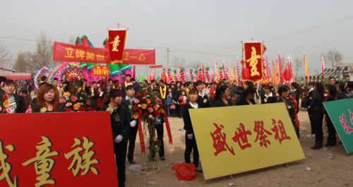 盛世奠祖, 兴我童族, 立碑祭祖 ,童族一心 。各地代表踊跃参会。