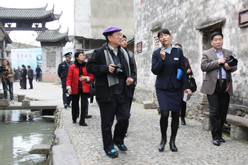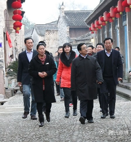 2012年2月25日浙江省省委书记赵洪祝在宁波市市委书记黄辉忠的陪同下在前童古镇调研。