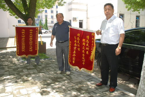 童青会长和云南宗亲向郎溪县赠送锦旗