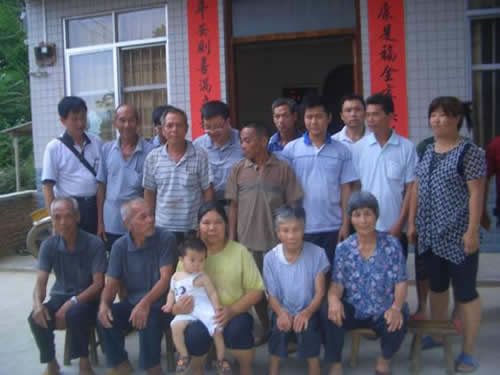 湖南宗亲和白竹口宗亲在有56年老屋前合影