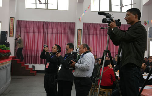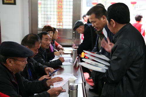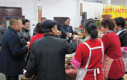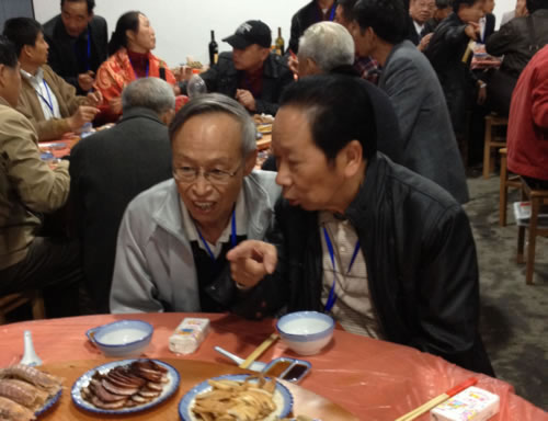 童第周儿子童时中宗亲宴席间与宗亲合影