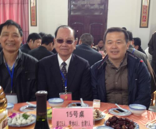 台湾宗亲童两传先生(中)与宁波宗亲在宴席间