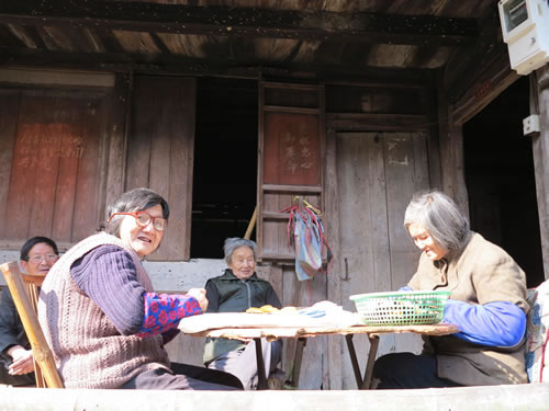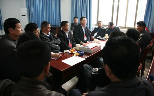 童第周儿子童时中先生与家乡宗亲代表交谈