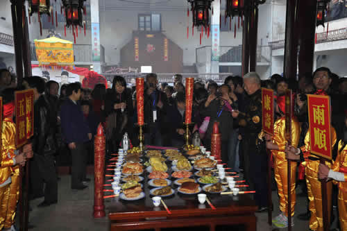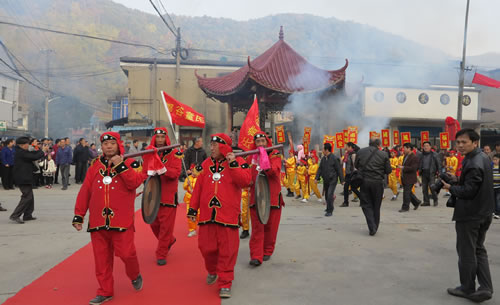 但是,2012年11月16日,古老而宁静的童村却因为一次聚会,骤然变得热闹起来了。这一天起,浙江童氏文化研讨会2012年会在这里举行,3天内,突然驶进了数十辆高级轿车,400多名全国各地的童氏宗亲齐集童村,宁静的童村鞭炮长鸣、锣鼓声声,到处披红挂彩,到处喜气洋洋,到处人头挤挤。。。。。。 童村沸腾了!