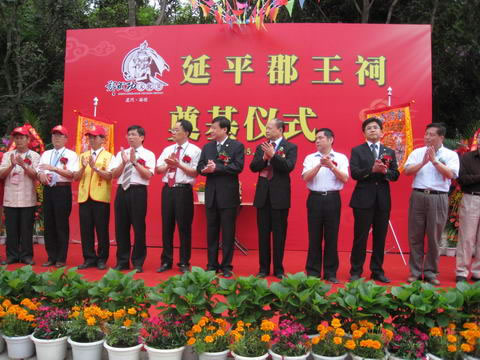 5月18日上午,童明康副局长、宋闽旺厅长、郑国珍局长出席了在厦门鸿山举行了郑成功文化节延平郡王祠奠基仪式。延平郡王祠是怀念拜谒民族英雄郑成功的祠堂。新规划建设的延平郡王祠占地面积996平方米,建筑占地面积336平方米,采用闽南建筑传统风格。