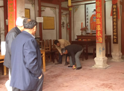 2013年4月5日,江苏溧阳童氏宗亲一行8人,为建造溧阳童氏宗祠,到浙江义乌蒋母塘童大宗祠考察学习,受到义乌童仕明、童仕松、童响民、童元财等宗亲的热情接待。溧阳宗亲仔细绘制了义乌童大宗祠的尺寸结构,表示将仿照义乌童大宗祠,在江苏溧阳再造一个新的童氏宗祠。