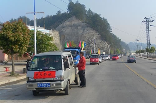 祭祖车队在大元村口集中