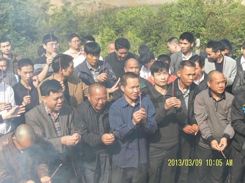 福建省永定县童氏一年一度的祭祖活动于2013年3月9日进行。这次参加祭祖人员共计四百多人。