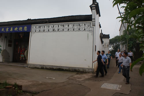 在蒋母塘村,市领导还兴致勃勃地参观了义乌市级文保点----蒋母塘的童大宗祠和老童家酒。