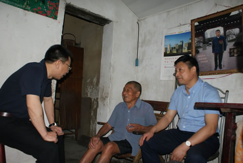 2013年6月29日上午,义乌市委书记李一飞在市委常委、组织部长徐涵兴、市委常委、政法委书记骆华勇等陪同下,来到城西街道蒋母塘村,走访慰问建国前入党的老党员童小弟。