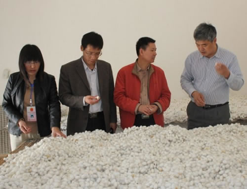 日前,盐城生物高等专科学校副校长童朝亮一行4人来如东考察早春全龄人工饲料养蚕,童校长一行在县蚕桑指导站韩益飞同志陪同下,专程到如东县饲料养蚕技术示范基地进行了实地考察,在看到示范户缪福田早春采用家蚕人工饲料生产的蚕茧后,十分高兴,向示范户详细询问了试验的过程与技术应用情况,听说缪福田已经搞了四年饲料养蚕后,童校长说,采用人工饲料养蚕是现代蚕业的发展方向,特别是如东的小蚕人工饲料共育技术已经相当成熟,非常实用,它不仅省力省工,而且有利于养蚕时间的安排,尤其是像今年春季桑园遇到冻害的情况下,更有意义。童校长还在现场抽取了部分样茧,用于虫草菌的试种研究,同时他表示,将在盐城尽快组织示范小蚕人工饲料共育技术。
