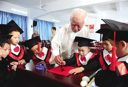 是什么原因让这个偏远的小山村,成为人才辈出之地?今年已是93岁高龄的退休教师童中方老人,一边为殷殷学童点上朱红“聪明记”,一边笑容可掬地对笔者说:“自始祖迁到此地,世代尊师重教。”