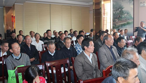 与会代表认真听取九续族谱副主编(主管世系编排工作)童威