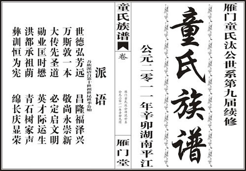 2013年10月6日,雁门童氏汰公世系宗亲理事会(简称:宗亲理事会)在湖南平江县三阳乡童家岭召开了“雁门童氏汰公世系第九届续修族谱圆谱大会”。宗亲理事会、九续族谱委员会全体成员和来自长沙、岳阳、汉寿、汨罗、湖北、江西的汰公后裔宗亲代表“启、文、明、勋、业、匡”六代共一百余人参加本次会议。
