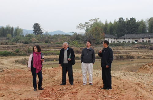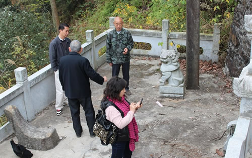 下午,在笔者的陪同下,童老等还到平江县童市镇翠阳村参观了童氏宗祠新址地基并诣访月坳村童氏迁平始祖汰公墓。